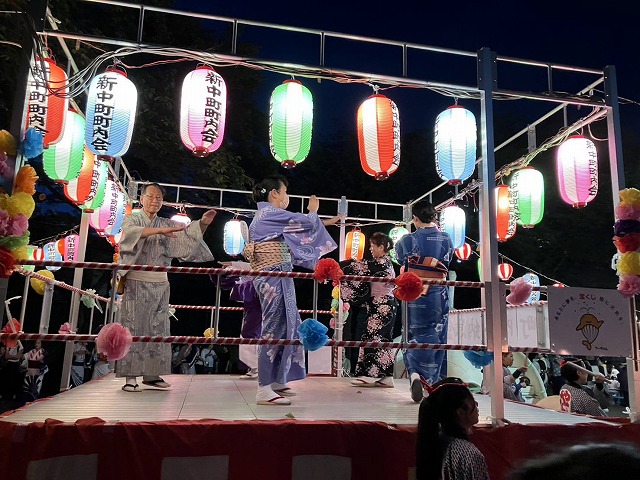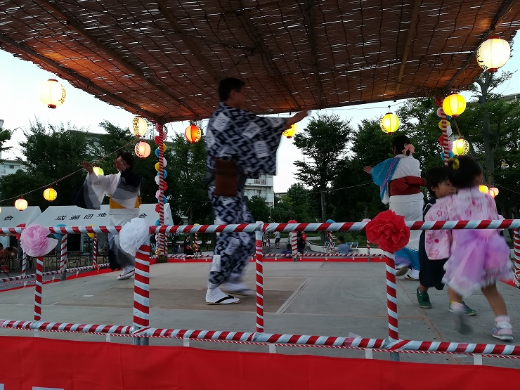 盆踊りは17.45-19:00(17:30-45は子どもの盆踊り)8時からは抽選会