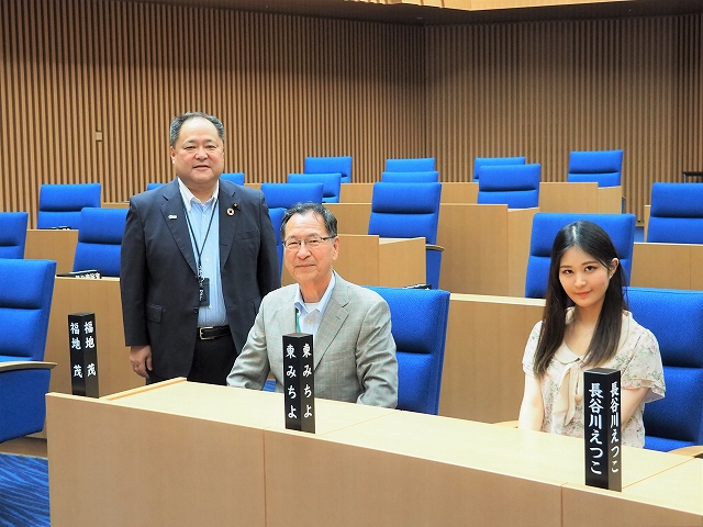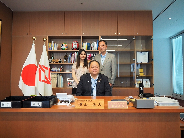 横浜市会、横山議長を訪問時に撮影したもの、元インターン生が同行