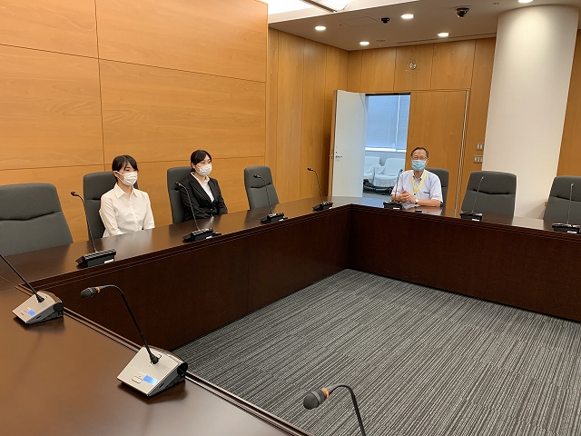 市政の動向と議会発言・態度・視察インターン生と委員会室を見学した際の写真