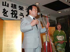 2001年5月21日、地元の地域新聞である、武相新聞の山根栄子社主の文部大臣表彰を祝う会が、盛大に開催された。発起人は地元の桜美林大学の佐藤東洋士学長、学校法人玉川学園の小原芳明理事長を始め、町田市及び相模原市のお歴々であった。