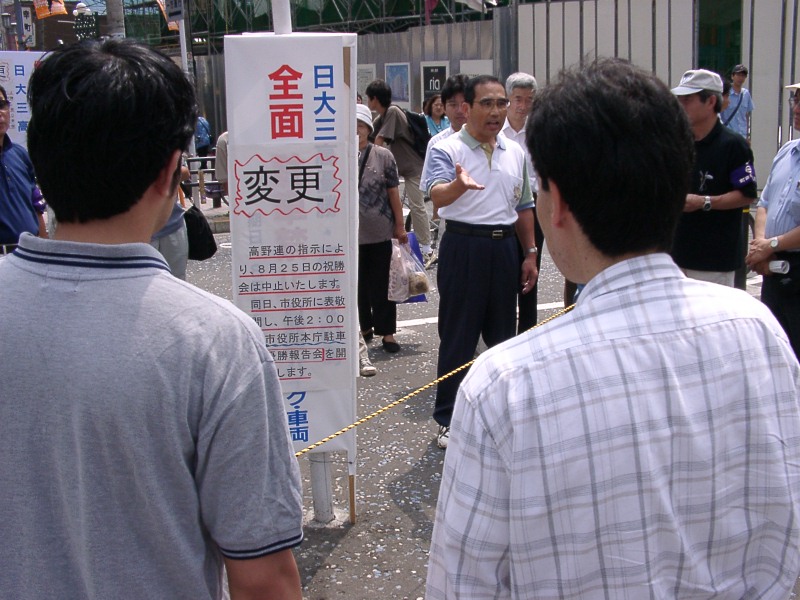 祝勝会が報告会に変更!(現場で説明中の黒坂部長)