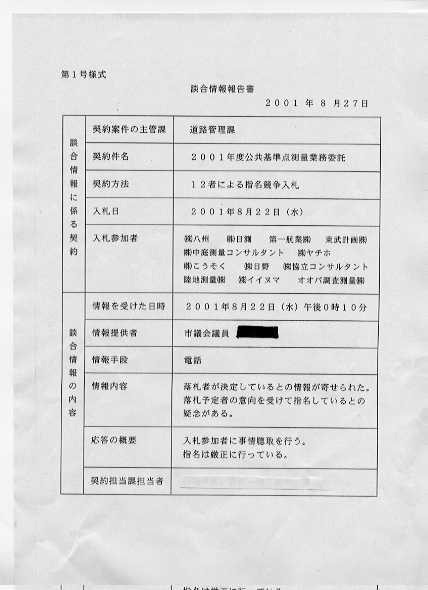 契約担当課担当者の3名の氏名は、行政職員であっても個人名を出すのが気の毒と思い、吉田が伏字としました。