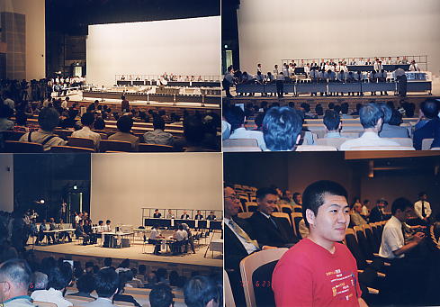 電子投票の開票が行われた舞台風景と、白鴎大学福岡ゼミの平野君(一人で現地に来ていた)