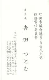 写真A わたしの名刺です(名刺に自由民主党と明記しているのは、私だけです。また、この総務常任委員長の肩書きは、3月議会で無くなります)