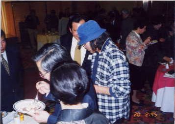 写真A懇親会風景、吉田もよそ行きの格好をしています