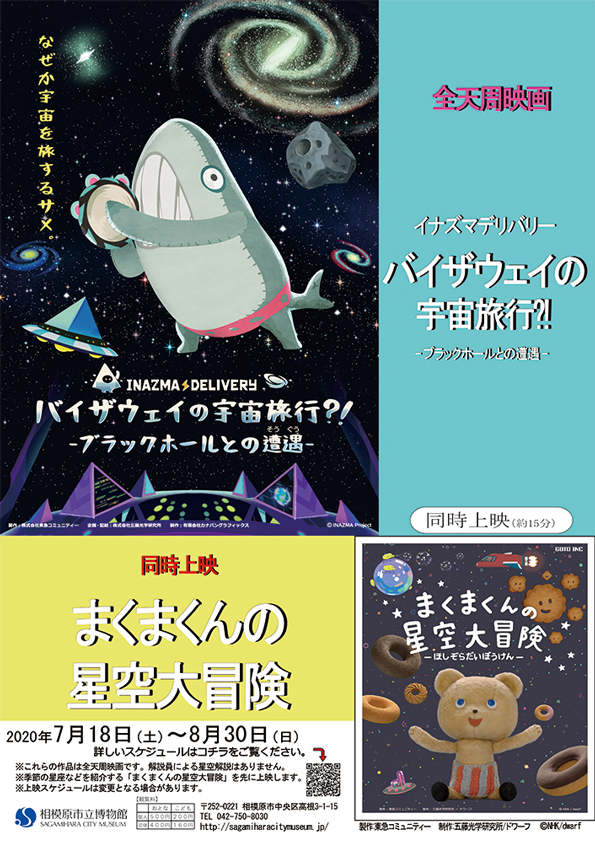 神奈川県内最大級となる館内のプラネタリウムでは、「まくまくんの星空大冒険」と「ナズマデリバリー バイザウェイの宇宙旅行?!−ブラックホールとの遭遇−」の二作品を鑑賞した。お盆休みに差しかかったなかで、家族連れが多く見られた。また、博物館の正面には、宇宙に関する謎を研究するJAXAの施設があった。