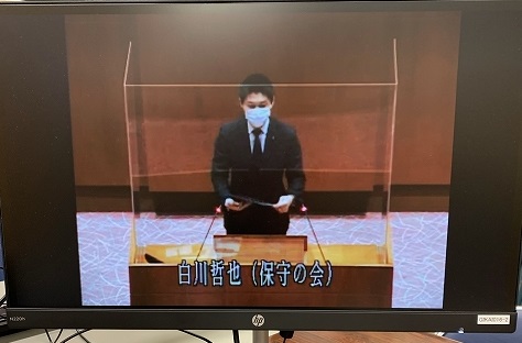 この議案の提案理由は、提案者の白川議員(保守の会所属)が、現在実施している都市計画税の税率の軽減措置(0.24%)を1年間延長することにより、納税者の税負担の軽減を図るためと説明されていました。新型コロナの感染が収まらず、この提案が通らないと、0.3%にアップするのを回避するのが目的でした。この議案の内容を尋ねた議員は無く、続いて討論が行われました。反対討論があり、それに反論する賛成討論がありました。その賛成討論では、ノー(NO)原稿で登場した吉田議員の雄弁を見ることもでき、大変勉強になりました。