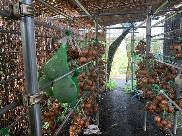 安全で安心な野菜や果物を提供するために年間を通して、様々な作物を無農薬で栽培しているそうです。この農地で栽培された野菜や果物などは経営している介護福祉施設で提供されています。全て露地栽培で行われているため、天候の影響を受けやすく、また害虫や野生動物などの被害が多いそうです。しかし露地栽培で育てた作物にしかない美味しさや魅力があると考えられており、丁寧に栽培されていました。