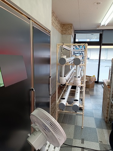 こちらの会社では国産に拘った商品を取り扱っており代表の方が十数年滞在していたフィリピンを中心として冷凍食品、酒類、化粧品類、ゴルフ用品などを現地パートナー企業を通して販売されているそうです。その中でも私達は新規参入した農業についてお話を聞かせて頂きました。農業分野では水耕栽培に力を入れており自社で開発した農業機器を使いイチゴの水耕栽培実験をされていました。