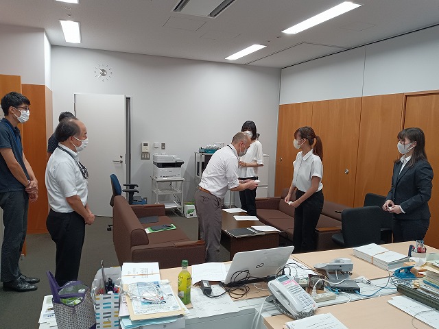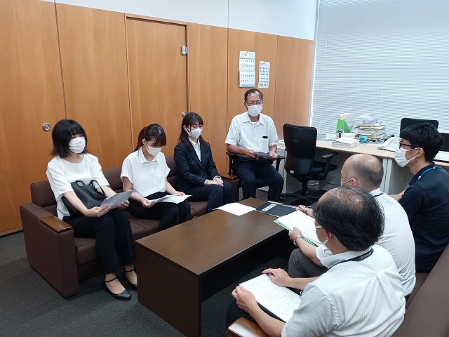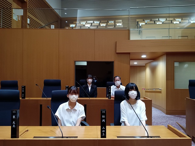 ヒアリングが始まる前には実際に議会が行われる会場(本会議場)を見学させて頂き、テレビなどでは観たことはあっても実際の会場というものは緊張感漂うものであると感じました。また議長や市長の方が座る椅子を見て、実際に大勢の人が会場に入るとなるとさらに緊張感は増すものであると思いました。ヒアリングの時間では吉田勉先生が議会で行う3つの質問に対して各部署の方が5〜6人程、吉田議員のもとを訪れて話し合いを行うというものでした。