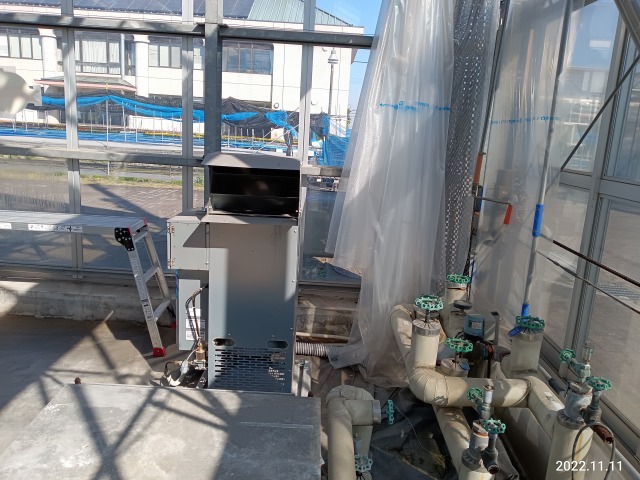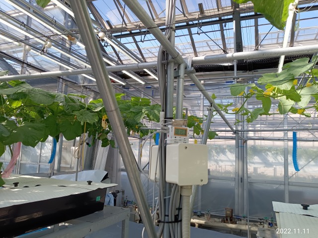 メロンの育成のため、炭酸ガスの発生装置が設置され、稼働していました。