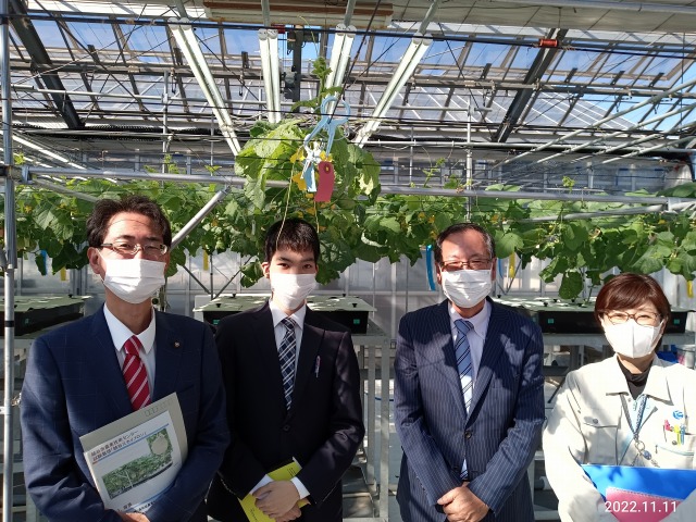 私は、そもそも町田市の民間企業が「まちだシルクメロン」を開発して、水耕栽培をしていることを知りませんでした。この技術をつかった越谷市のメロンには、つるがないことに大変驚きました。最後に、職員の方々に工夫をしていらっしゃる点について伺いました。メロンは、ビニールハウスの温度を常に18℃に保たないといけないそうです。外気の温度によってハウス内の温度が変化してしまうと、冬作の収穫が下がってしまう恐れが生じます。そのため、近くにあるゴミ処理場のボイラーから70℃の温水を頂き、暖房に活用しているということでした。