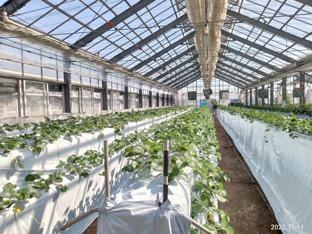 今回、私は吉田議員と埼玉県越谷市が運営する農業技術センターを訪問し、職員の方々にお話を伺いました。農業技術センターには、ビニールハウスが全部で4つあり、主にイチゴとメロンの栽培や試験等が行われています。このような施設は、日本全国に40から50か所しかないそうです。今回、町田式新農法のシステムを使ったメロン栽培を行っていると知り、訪問させて頂きました。越谷市で新たにメロン栽培を始めた理由は、イチゴに続いて高収益が期待でき、たくさん収穫できるからだそうです。栽培のサイクルは、4か月で一株から平均30個で、糖度は15度から18度と高いそうです。