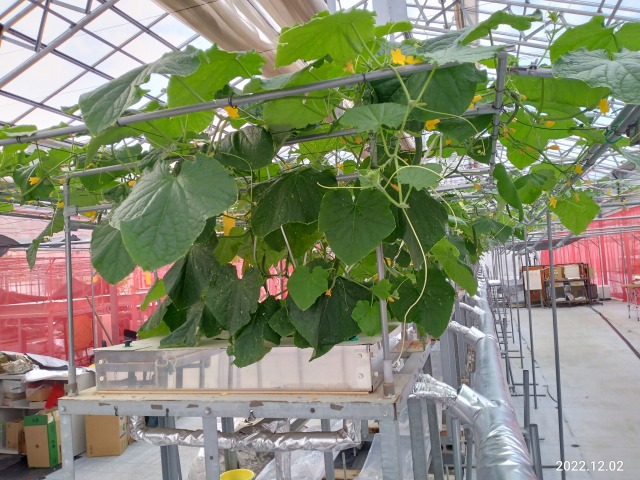 メロンの他にも、カボチャ、ミニトマトやきゅうりを栽培していました。ただし、水耕栽培で重力に逆らいながら根から上部に向かって栄養を吸い上げている植物にとって、土中の振動でも大きな影響を与えるようで、デリケートな影響も様々に起きる可能性もあるようでした。