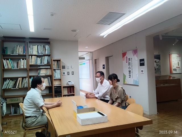 インターン生の柴田さんは、学芸員の授業を取っていることで、施設に学芸員の方はどうかかわっているのか、学芸員はどのような人がなっているのかということまで伺いました。