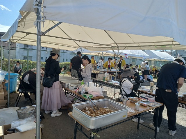 今回は、先週設営のお手伝いをさせていただいたコープタウン自治会のつきみ祭り当日でした。雲一つない青空で天気にも恵まれ、祭り会場は多くの子供たちで賑わっていました。そんな中私たちインターン生は、焼きそばの屋台をお手伝いさせていただくことになりました。現地に向かうまで今回は何をするのか知らされていなかったため、伝えられた時は戸惑いましたが、すぐに作業にも慣れることができました。作業をする際、お手伝いできることはないか聞いたり、わからないことを聞いたりする中で沢山地域の方々と交流をすることができ、とても有意義な時間を過ごすことができました。優しく声を掛けていただくこともあり、地域の方の温かさに触れることができました。