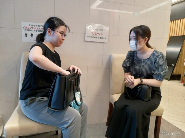 西條菜々美さんは、元の先輩インターン生で社会人となっている石井七海さんと会いました。