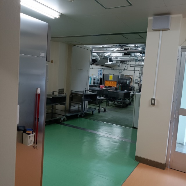 中学校給食の開始(境中学校分も作り、食缶で入れ、トラックで搬送する)に合わせ、給食室の改修が進む