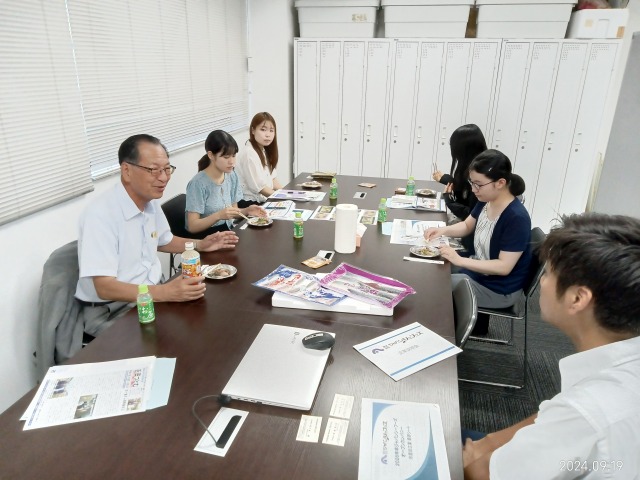 佐々木さんは、9回目のインターンシップになります。この日は、水産加工の分野でアジ、サバという青物類の生食流通の安全性確保の分野で先駆的な技術を持つ、ジャパンシーフーズ(本社工場:福岡市)の関東営業所に訪ね、お話をお聞きしたものです。試食があったのも特徴的でした。