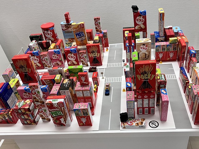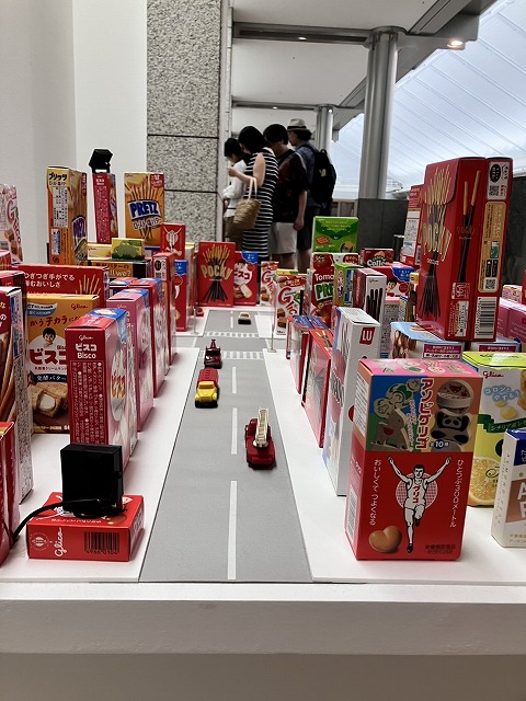 湖池屋のCMにてフレーズを繰り返す方法を使うとして、アイデアはなんとするか。監視カメラに映った主婦が売り出したいスナック菓子の名前と特徴を呟いている。事件に関係していたその映像を刑事が二度巻き戻し、同じフレーズを自然な流れで視聴者に刷り込みます。ドラマ性も兼ね備えた印象深いCMがこうして作られたのだという説明を展示会で見た時、展示会のサブタイトル【新しい×(作り方+分かり方)】の意味を理解し、佐藤雅彦さんの深い作りの世界を感じた展覧会でした。