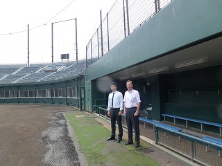 <第5回:インターンシップ5日目> 町田市議会議員 吉田つとむ 研修生 第30期研修生 出雲 克佳 明治学院大学2年生 <6月8日のレポート> ![]() 6月8日の活動で町田市にある小野路球場をお訪ねしたので、その事について書いてみたいと思います。小野路球場とは、小田急線鶴川駅付近にある野球場です。なぜ今回この球場を訪れたかと言うと、以前までは軟式野球までしかプレー出来なかったのですが、球場を大幅に改築して硬式野球をする事が可能になったのです。町田市には、日大三高や桜美林高など全国でも強豪校とされるチームが多くあるので、町田市にとっては待望の市営球場となりました。 その球場ですが、実は僕も玉川学園中等部野球部時代に訪れた事があります。その当時はベンチや放送席等があるだけで、観客は立って観るか、脇にある簡単なベンチに腰掛けて観ることしか出来ませんでした。それが今回一番驚いたのは、なんと言っても綺麗なスタンドが出来た事です。エレベーターもついていて、車椅子専用の席もあり、車いすの方も試合を観戦できるようになっています。 そして、この球場では今年から高校野球の公式試合が行われる事になっています。僕は玉川学園高等部野球部時代、多摩センター近くの一本杉球場や、南大沢付近の上柚木球場などで多く試合をしました。それらの球場には、それぞれ大切な思い出が詰まっています。このように、高校野球で試合をした球場には、それぞれ深く思い出が残るものです。沢山の高校球児がこれからこの場所で、全力で野球を楽しみ、沢山の汗や涙を流し、多くの人に感動を与えてくれたら幸いです。 ・・・・・・・・・・・・・・・・・・・・・・・・・・・・・・・・・・・・・・・・・・・・・・・・・・・・・・・・・ 記:町田市議会議員 吉田つとむ 志政クラブ 2012.6.10 コメント この日は、小野路球場に出かけました。本年からこのグランドで高校野球夏の甲子園大会東京都予選の会場となることで、その下見にやってきた次第です。 この場所に来たのは、軟式野球の全国社会人大会の予選を観戦するためにやってきたのが最後です。当時、観客席が完成したばかりで、まだ、エレベーターが設置されていませんでした。北海道帯広市の六花亭の企業チームとその社長さんが来ておられました。ブラスバンドの応援が入るはずのものが、町田市の準備が悪く、それを受け入れることができませんでした。機会があれば、その事態を謝り、再度の来訪をお願いしたいものです。 さて、今年の都大会予選を楽しみにしたいと思います。 2012年 研修生の出雲克佳さんを同行し、改装の小野路球場を見学 (2012.6.8動画) トップページに戻る リストに戻る |