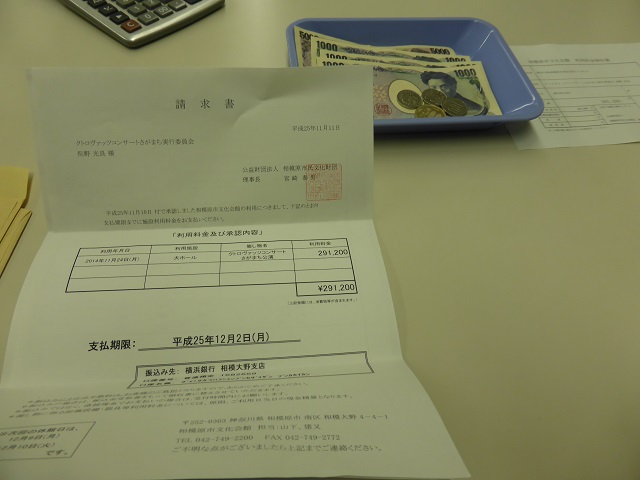 町田市議会議員 吉田つとむ 研修生 第33期研修生 金田有里恵 フェリス女学院大学1年生 ≪本日の研修内容と感想≫ 本日は主に、来年の11月に開催するコンサートの準備をしました。はじめに、会場である相模女子大グリーンホールに、直接会場費を支払いに行ってきました。コンサートを行うには会場費だけでなく、音響や演奏者への謝礼、ピアノの調律など、多分野でお金がかかるということが分かりました。 次に、このコンサートの管理をしていらっしゃる日本青年館の担当者の方への、報告および質問を記したメールを作成、送信しました。大学に入学し、大人の方へのメールの作成をする機会は以前よりも増えましたが、未だに時間をかけて文章を考えてしまいます。丁寧で失礼でない、且つ簡潔で分かりやすい文章を速やかに作成する能力はこれからの生活でも必要だと思うので、早く腕を磨きたいです。 今後も、チケットやパンフレットの作成など、準備は様々あります。 フェリス女学院大学1年 金田有里恵(第33期研修生) ・・・・・・・・・・・・・・・・・・・・・・・・・・・・・・・・・・・・・・・・・・・・・・・・・・・・・・・・・ 2013.11.16コメント 記:町田市議会議員 吉田つとむ インターン生の金田さんは、私が準備しているピアノ コンサート(クトロヴァッツ コンサート)の会場費支払いに同行し、実際のその支払いをやってみてもらいました。1年先のものですが、この日に会場費(291,200円)を支払うことから実際上の始まりになります。12月2日までに支払いをすませないとキャンセルした扱いになってしまいます。無事に会場予約の契約が成立したことになります。 これから、演奏曲目、コンサートの開催時間など、あるいは、入場料金など詳細を決めるステップになります。それらが済まないとチケットも、チラシも作成できません。次のステップも観てください。あるいは、作成にかかわってください。 トップページに戻る リストに戻る |