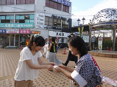 町田市議会議員 吉田つとむ 研修生 第34期研修生 佐藤小百合 昭和女子大3年生 ≪本日の研修内容と感想≫ 今回のインターンシップは吉田つとむ議員に同行して、午前は熊野神社で開催された盆踊り大会の準備の手伝いをしました。最初は人見知りをしてしまい、なかなか打ち解けることができないでいましたが、準備に参加していた住民の方々からしだいにお声をかけていただき、最終的には住民のみなさんとも自然とお話することができました。今回の手伝いをとおして、別の地域の人々との繋がることの大切さを知る事ができ、とても貴重な体験ができました。 ![]() ![]() 午後には成瀬まつりの見学をさせていただきました。成瀬まつりは成瀬駅前で8月1〜2日にかけて行われるお祭りで、屋台の他にイベントの開催や自衛隊の方たちが使っている乗り物に乗れる体験コーナーなどが催されていました。こちらでもたくさんの地域の方々にご挨拶しました。また、イベント会場では町田市の子どもたちや大人のグループがダンスを披露しておりました。とてもキレのある動きをしており、見ていて私も踊りだしたくなるようなダンスを披露してくれました。他にもソーラン節を踊っていた子どもたちもおり、小学生のときに踊ったなと懐かしく思いました。自衛隊の方たちがだしていた乗り物の体験コーナーには多くの子どもたちが楽しそうに乗っていたところはとても微笑ましく思いました。屋台には様々なお店が並んでいてどれも美味しそうでした。途中、串こんにゃくとポップコーンをごちそうしていただきました。地元のお祭りとはまた違った雰囲気を感じることができて、とても面白かったです。今度は友達を誘って、また行きたいと思います。 ![]() 昭和女子大3年生 佐藤小百合(第34期研修生) ・・・・・・・・・・・・・・・・・・・・・・・・・・・・・・・・・・・・・・・・・・・・・・・・・・・・・・・・・ 2014.8.2コメント 記:町田市議会議員 吉田つとむ 8月2日から佐藤小百合さんのインターンシップが始まりました。週末と言うこともあって、お祭りに関わることになります。最初の日程は高ヶ坂熊野神社の境内で行なわれる高ヶ坂第一町内会の盆踊り大会の準備に赴きました。いきなり、女性陣の中に加わり、神楽殿内の作業に入りました。まさか、野外で作業をやってもらうわけにはいかないと考えました。結果的に、この部分は映像がありません。 次いで、成瀬地区に戻り、空中放射線量の測定を行いました。上の写真はその時の写真です。まつ、続いての写真は、佐藤さんが太鼓を叩く、私の友人と会い、名刺を渡して挨拶をしました。 その成瀬まつりには、たくさんの店が出ており、催しも多種の演目がありました。なお、写真は金森2丁目の盆踊り大会の会場での写真です。まだ、参加者が出添わない時間でした。 トップページに戻る リストに戻る |