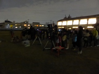 この日は雲が多く、星が観測できるかどうか微妙な状況でしたが、校庭に設置された望遠鏡からは木星を観測することができました。