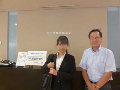町田市議会議員 吉田つとむ 研修生 第36期研修生 石井 優希 昭和女子大学3年生 ≪本日の研修内容と感想≫ 7回目のインターンシップとなります。 第3回町田市議会定例会を傍聴しました。本日は一般質問の4日目となっており、各会派それぞれの議員が行政に質問を行います。事前の抽選により発言順位が決められるのですが、本日は吉田つとむ議員の所属する「保守連合」会派の議員の通告を傍聴することができず、残念に思いました。 ![]() 市議会の入り口受付です。この場所で本会議や委員会の傍聴券を配ります。 このような市議会の会議を傍聴するのは初めてだったのですが、それぞれの議員が多様な分野に焦点を当てて質問を行っており、議員その人のカラーがよく分かると思いました。 ![]() 町田市議会は36名です。正副議長を除いた34名中33名が一般質問しました。 通告内容で特に気になったトピックとして、市内の学校に「赤ちゃん登校日」を取り入れてみては、という内容がありました。私は大学で教職課程を履修しており、教育問題には強い関心を持っています。 この「赤ちゃん登校日」ですが、私は今回初めて名前を知りました。お母さんに赤ちゃんと一緒に学校に来てもらい、児童生徒と関わりを持つことで、情操教育の一端を担うことを目的とするプログラムであり、既に実施している自治体もあるようです。 児童生徒にとって実りの多いプログラムに感ぜられましたが、教育長の答弁によると、やはり今すぐ実施というわけにはいかないようで、新しいプログラムの導入は、多大な時間と労力を要するのだなと思いました。 昭和女子大学3年生 石井 優希 (第36期研修生) ・・・・・・・・・・・・・・・・・・・・・・・・・・・・・・・・・・・・・・・・・・・・・・・・・・・・・・・・・ 2015.09.09 コメント 記:町田市議会議員 吉田つとむ 今回も5日間の一般質問でした。この日の石井さん、1日目の稲葉さん共に、私を含めた保守連合会派の質問順には遭遇しませんでした。インターン日程を先に決め、その後、一般質問の登場順の抽選が行われるためです。他の議員の一般質問を聞いてもらいました。 議員は当選2期目、3期目になるとそれぞれに得意分野を持つようになります。一概に自分が得意なものと言うより、他の議員があまりやらないものを追いかける場合もあります。私の質問分野もかなり偏っているかもしれません。それは、自分の「政治公約」に掲げることと近い内容につながってくるでしょう。意図的でもあります。他の議員もその大筋、そのようだと思います。 議会では、教育問題、子育てはよく論じられる分野です。今回はその双方にまたがる分野の質問が出されたわけです。 それらの質問に対して、行政は答弁を行います。ものを促すこともあれば、事態を抑える、あるいは排除を求める場合もあります。私は、今回、その事業の廃止を求める提案を行いました。大胆に自分の主張を提案するのが私の特徴です。今後、石井さんは建設常任委員会、決算特別委員会を傍聴する予定になっています。どうぞ、その機会にどんなことに関心を持ち、どのような話しぶりは聞いてください。 トップページに戻る リストに戻る |