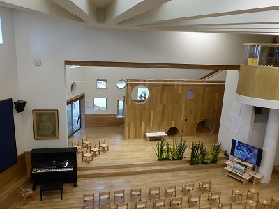 新しくできホールはお昼にはランチルームとなり、天井からの明りやユニークな窓の明かりによって暖かい感じがして、木のぬくもりを感じることができました。 町田自然幼稚園は2015年4月から「幼保連携型認定こども園」の認定を受け、それに向けての新校舎ができました。幼保連携型認定こども園とは、保育園の機能と幼稚園の機能の両方を合わせもつ、ひとつの施設のことを言います。幼稚園が保育としての役割も持てることで待機児童の解消や子どもたちにとって様々な年齢の友達と交流をすることができるというメリットがあります。幼保一元化にはメリットがある側面もちろんデメリットもあります。それでも、現在一番の問題である待機児童が解消されることによって、女性の社会進出を助けることができます。また保育園と一体になることで国が補助金を出す義務がなくなり国の経済面でもメリットがあります。新しいことをするにはさまざまな問題もでてきますが、この制度が広がっていくのではないでしょうか。 ・・・・・・・・・・・・・・・・・・・・・・・・・・・・・・・・・・・・・・・・・・・・・・・・・・・・・・・・・ 2015.05.22コメント 記:町田市議会議員 吉田つとむ 岡澤 優紀さん(第36期生)は3回目のインターンでした。 たまたま、幼稚園の新しい園舎が完成したことで、竣工式に出席しました。先方の理解を得て、インターン生の岡澤 優紀さんを同行しました。 岡澤さんにとって、少し前の記憶をたどっての、幼稚園見学のコースでした。新しい時代に向けて、幼稚園と保育園の融合を目指した施設です。国の施策(補助を含む)が決まらない内に工事を進めざるを得なく、様々の苦労があったようですが、それぞれの皆さんの取組で4月1日のスタートができたとのことでした。 実際には、これから諸問題が発生するわけでしょうから、私もその発展に注目したいと思います。 トップページに戻る リストに戻る |
