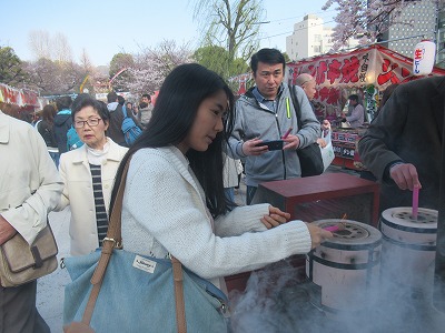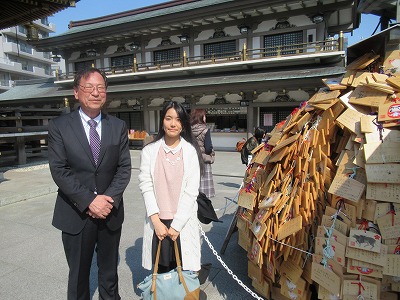 武者小路麻理さんとは、久しぶりに合いました。この日は、かねてから学問の神様(受験の合格、あるいは就活の内定を目指すにピッタリ)である、菅原道真をまつった「湯島天神」にお参りしました。この時期は、合格御礼の方が多くなっていました。そうした皆さんは、親子でお参りに来ている家族も目立ちました。