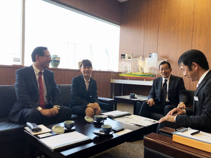 1889年に数社の会社が合併し設立された歴史ある会社で、首都圏や伊豆諸島、小笠原諸島を結ぶ観光及び、生活航路の役割を果たしています。伊豆諸島は東京から最短1時間45分で行ける気軽さもありながら自然が豊富であり、島それぞれに違った魅力があると知りました。例えば伊豆諸島には温泉があり、圧倒的な星空が見える等の見どころがあります。 私は終始緊張していましたが、とても丁寧に質問に応じてくださり社会で働く方々とお話しする機会が少ないので良い経験になりました。伊豆諸島全体ではここ10年間で1割の人口が減っていて、高齢化や少子化は今後の課題であるそうです。若者向けに島の情報発信をし、興味を持ってもらうことが必要だと感じました。また、車は環境問題を考えた電気自動車などの開発が進んでいるが船はどのような取り組みを行っているか質問しました。船は車と比べ全体的に開発が遅れているが東海汽船の貨客船「橘丸」にはスーパーエコシップ(環境に有害な物質の排出が少ないCO2削減を行う等)が導入され、環境問題に取り組まれているそうです。 |