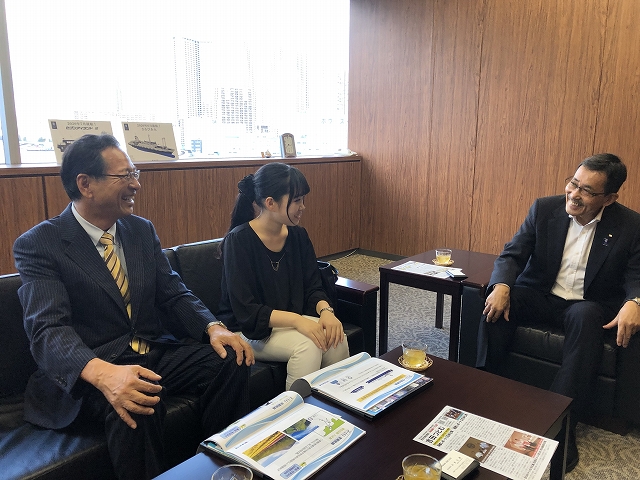 今回は東海汽船株式会社さんを訪問しました。東海汽船さんは主に海運関連の事業を行っていて、ちょうど今年が130周年という歴史ある会社です。この度、ご縁があって山崎社長と面会することができました。