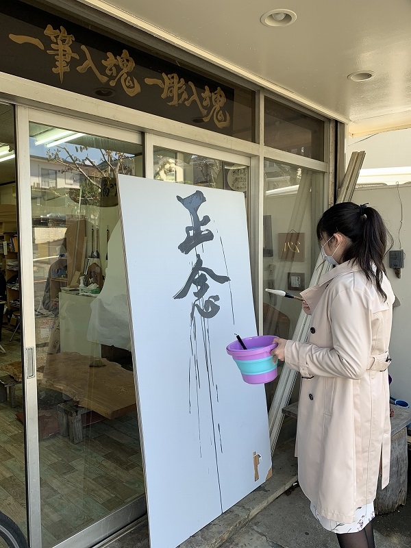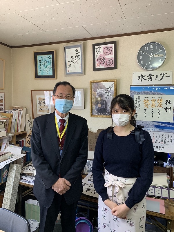 今回は木と字と神林さんに訪問させていただきました。私事ではありますが、幼いころから、書道を行っていて、木と字と神林さんが販売している「水書きグー」を利用したことがあり、興味があったため私の希望で訪問させていただくことをお願いしました。訪問し、創業55年と歴史ある老舗の雰囲気が漂う作業場だなと感じました。木製看板、木彫看板製作、商業書画を主にされており、素敵な作品の数々を見せて頂きました。ドラマ「JIN-仁」に作品が使用されたりと、素晴らしい社歴を初めて知ることが出来ました。