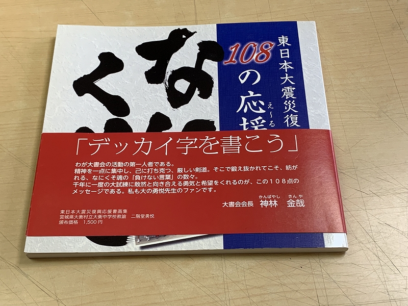 会社訪問を記念し、水書きグー を使い、松村さんがそれに文字を書いてみました。迷いなく、正念場としました。