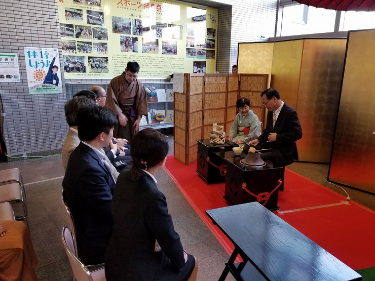 2018.09.28パラバトミントン世界大会:町田市議会茶道部協力参加、亭主役で冷や汗