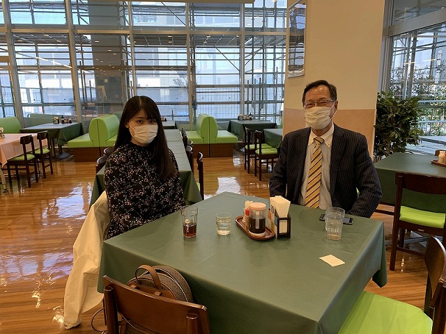 先輩インターン生と一緒に面談、就活と社会人生活を聞かせてもらう