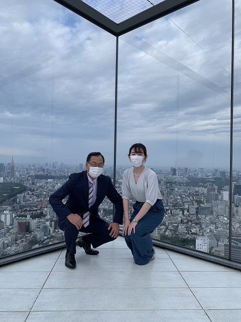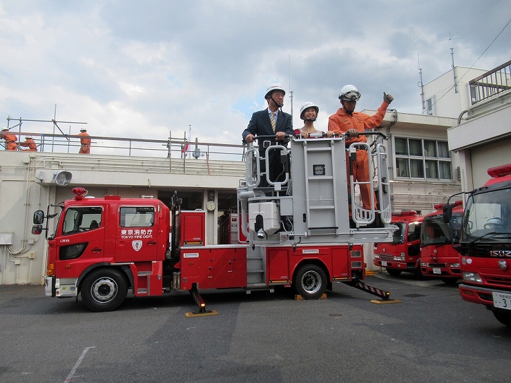 町田消防署ではしご車に載せてもらい、地上30mの上空に