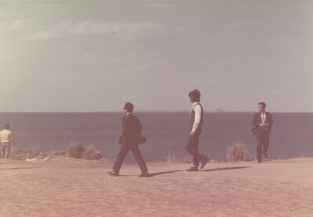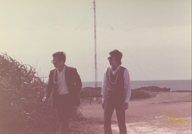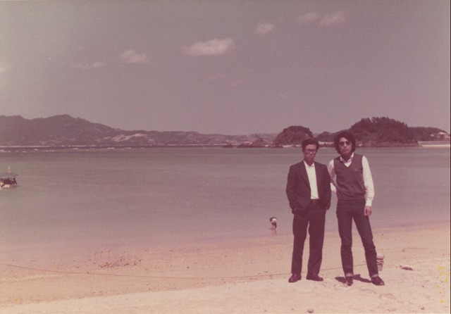 この頃は、IBルック風の服装を来ていました。会社の3人で沖縄旅行です。全額会社負担でした。