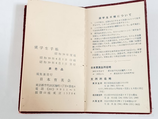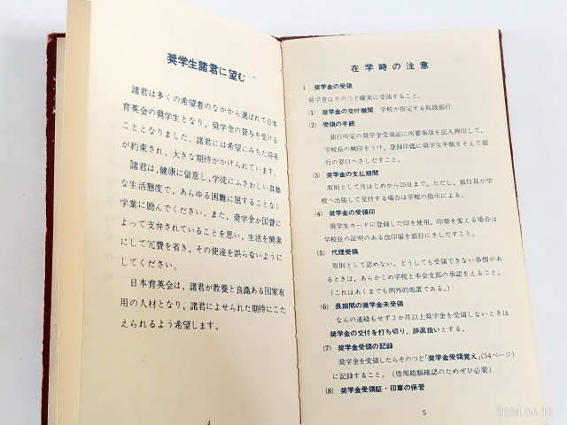 高校時代の資料で、日本育英会の手帳が出てきました。記憶ははっきりしています。中学時代は無知で奨学金制度をあることを知りませんでした。本来は中学時代に知っておれば、それを申請して、高校入学と同時に日本育英会の奨学生に認めれていたでしょう。