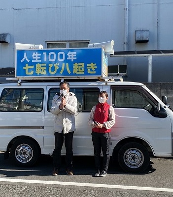 ●過去16年間、常に新しいチラシを作り、暑い日も寒い日も、雨の日も欠かさずに駅頭で配布してき ました。コロナ感染拡大防止を意識し、令和2年1月より、不繊布マスクと白手袋を着用。