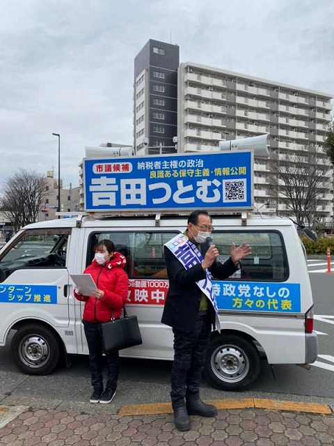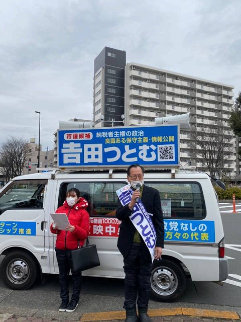 吉田つとむ 2022年2月 市議会選挙に立候補 ポスター