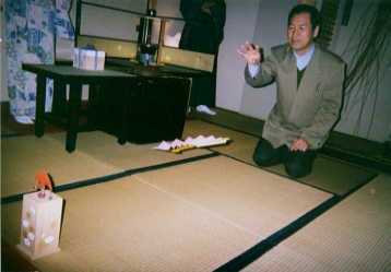 趣味:投扇興としましょう。まさに、的の蝶に向かって飛行中の扇の写真。