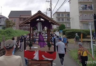 小川コープタウンの「月見祭り」に参加させて頂きました。雨で開催されるか分からない状態でしたが、午後にかけて晴れてゆき無事に夏祭りを行うことができました。私の地元では山車を引く文化がなく、初めての経験で面白かったです。子供たちが大声で頑張っているのを見て、自分たちも山車を頑張って引かないといけない気持ちになりました。