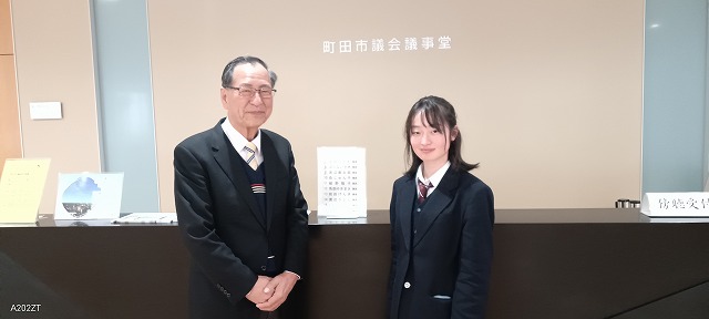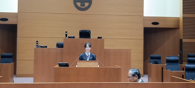 塩澤さんのインターンシップは二日目でした。延々と議員が入れ替わりで、質問するのが本会議の一般質問です。この日に吉田は一般質問を下のですが、他の質問に感心があったようでした。。