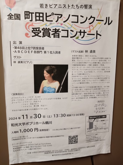 この町田市ピアノコンクールの名称は全国を冠しており、そのためか、7月の週末と夏休みの期間に開催となっており、本選も8月中の日曜日、今年は8月25日の町田市民ホールでの開催となっています。前にも実感したことですが、全国から出場者があるのが特徴です。