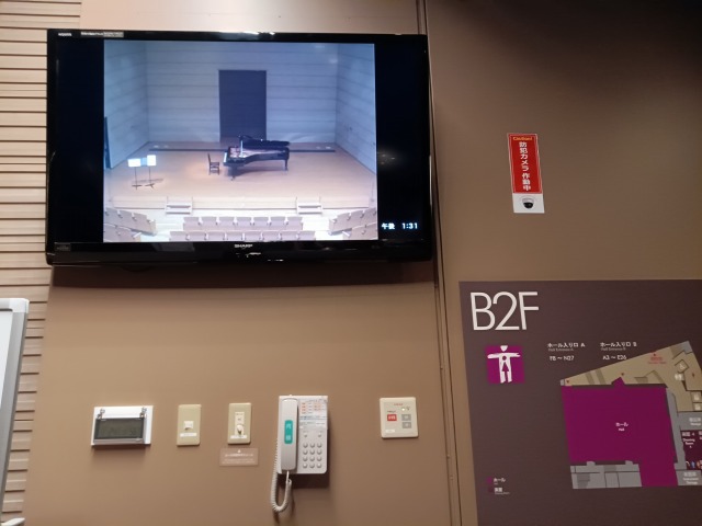 もうじき、審査が再開です。モニターには調律が終わり、ピアノだけになった舞台があります。