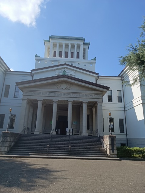 劇という表現は、場所と人で新たな感動を呼び起こしてくれますが、会場の大蔵山記念館ホールは、東急東横線大倉山駅を下車して、線路沿いの旧坂を上って、途中から左寄りにカーブしたところの先の緑の中にありました。緑豊かな山頂の庭園公園の中にギリシャ風の洋館があり、その階段を少し上がった前面にホールがありました。舞台にはピアノが1台あり、コンサートホールの様相でした。この日は演劇ですので、その舞台とホールの中央を使っての公演でした。演者は自分の左右に観客がいるという設定でした。天井が高く、幻想的な雰囲気をかましだしていました。