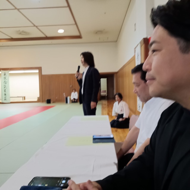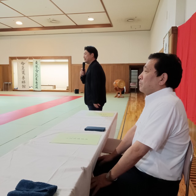 それから町田市立体育館に出向き、武道場に入り、合気道養昭館(茂野忠昭館長)の昇級昇段審査会に出席しました。来賓では、町田市合気道連盟の会長 小磯善彦都議会議員、同副会長 伊藤俊輔衆議院議員、同副会長 吉田つとむ市議、それに、小野りゅうじ市議が参加しました。