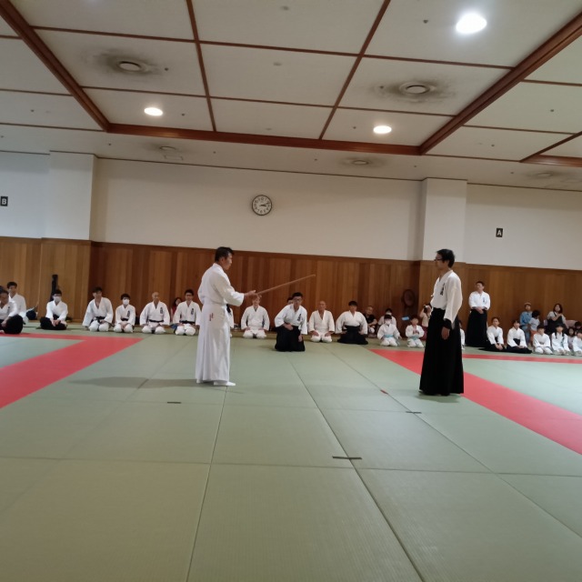最初に茂野館長による仗を使った技が説明され、次いで師範代や指導員の方々による、模範演武が披露されました。